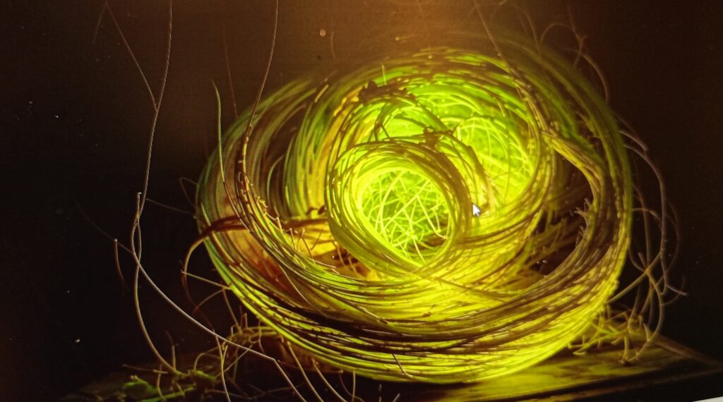 С помощью Лу экспедиция нашла ту самую пещеру. То, что они там увидели, заставило их замереть: на стенах висели десятки коконов. Бабочки, выходя из куколки, не покидали их сразу. Они вплетали в структуру кокона особые ферменты и минералы, которые делали нити светопроводящими. Процесс распускания кокона был уникальным: бабочка не прогрызала его, а аккуратно расплетала нить за нитью, сворачивая их в аккуратные мотки вокруг себя. Если нить не трогать, она продолжала светиться еще несколько лет.